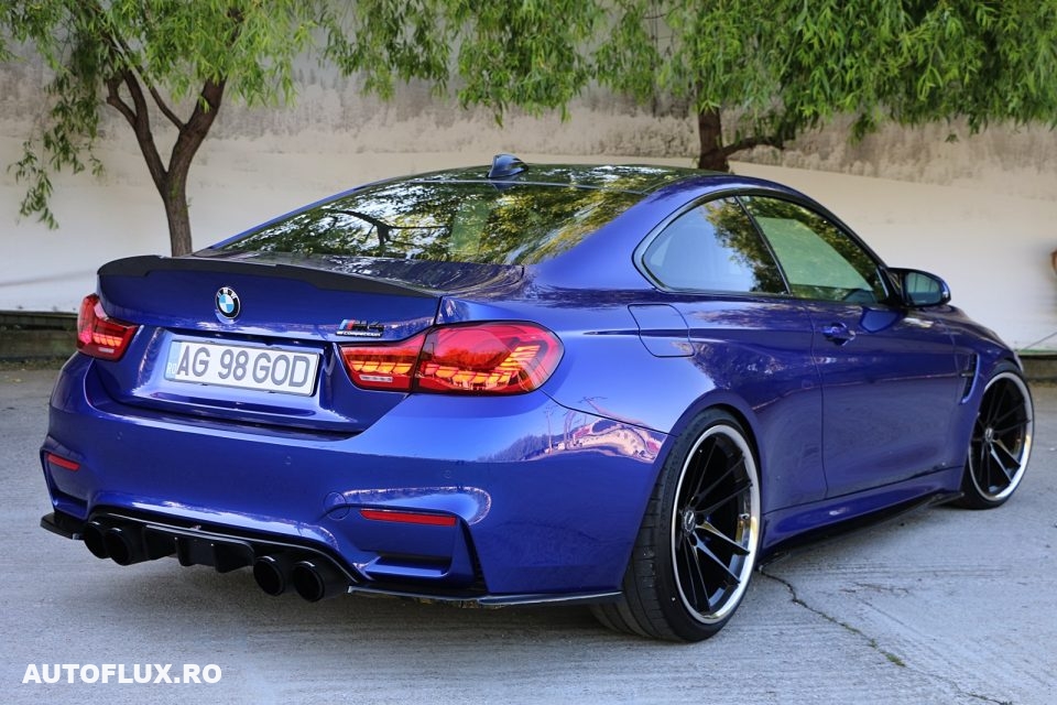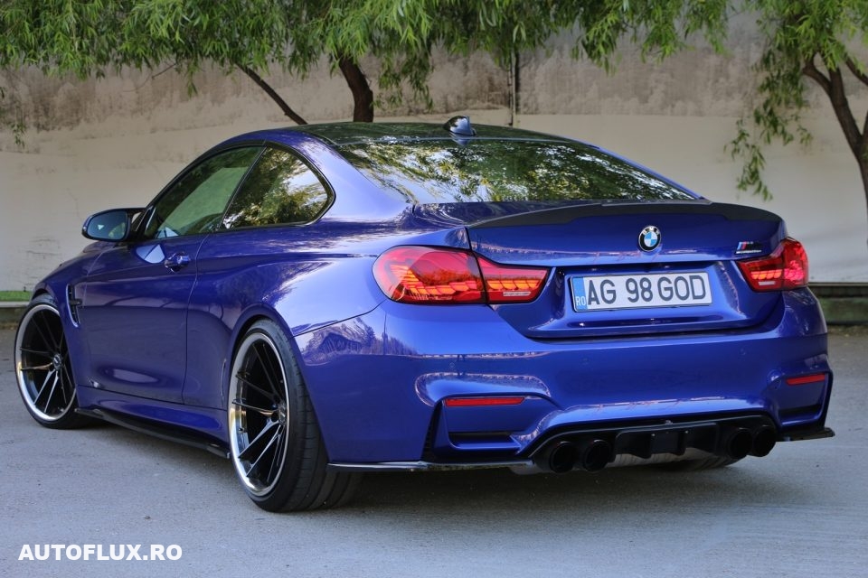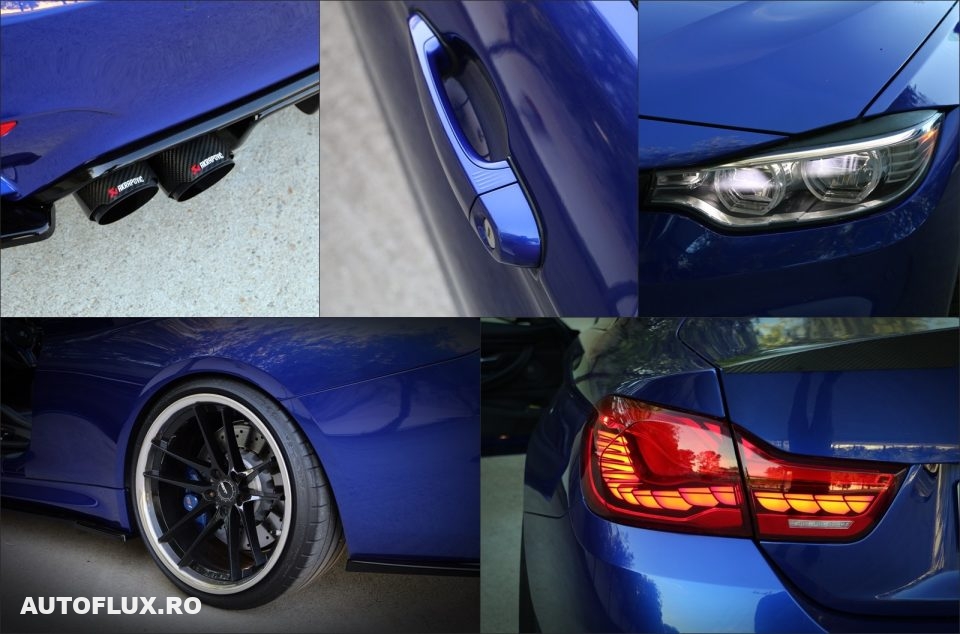 Despre masina va.pot spune ca a fost intretinuta ca la carte, FARA accident, fara niciun punct de vopsea straina, fara zgarieturi . Se prezinta ca o masina noua. Nu s a circulat pe ploaie,nu s a facut abuz de niciun fel, a stat doar in garaj cand nu a fost folosita.Nu mai incape in discutie mentenanta ( filtre,ulei,bujii etc )Eu am luat masina stock,investitiile facute de mine fiind doar de ordinul esteticului( aprox 10.000 eur )Are suspensie reglabila KW (am pastrat functia de „adaptive suspension”), jante ABS flow forged 20″ 10 j cu 11j ,anvelope Michelin PS4 cu steluta, prelungiri bara fata, praguri, diffuser spate cu tipsuri Akrapovic, X pipe, filtre K&N ,stopuri CS style,eleorn carbon, elemente carbon pe bara fata,volan custom carbon etc. Motorul si cutia sunt stock !
